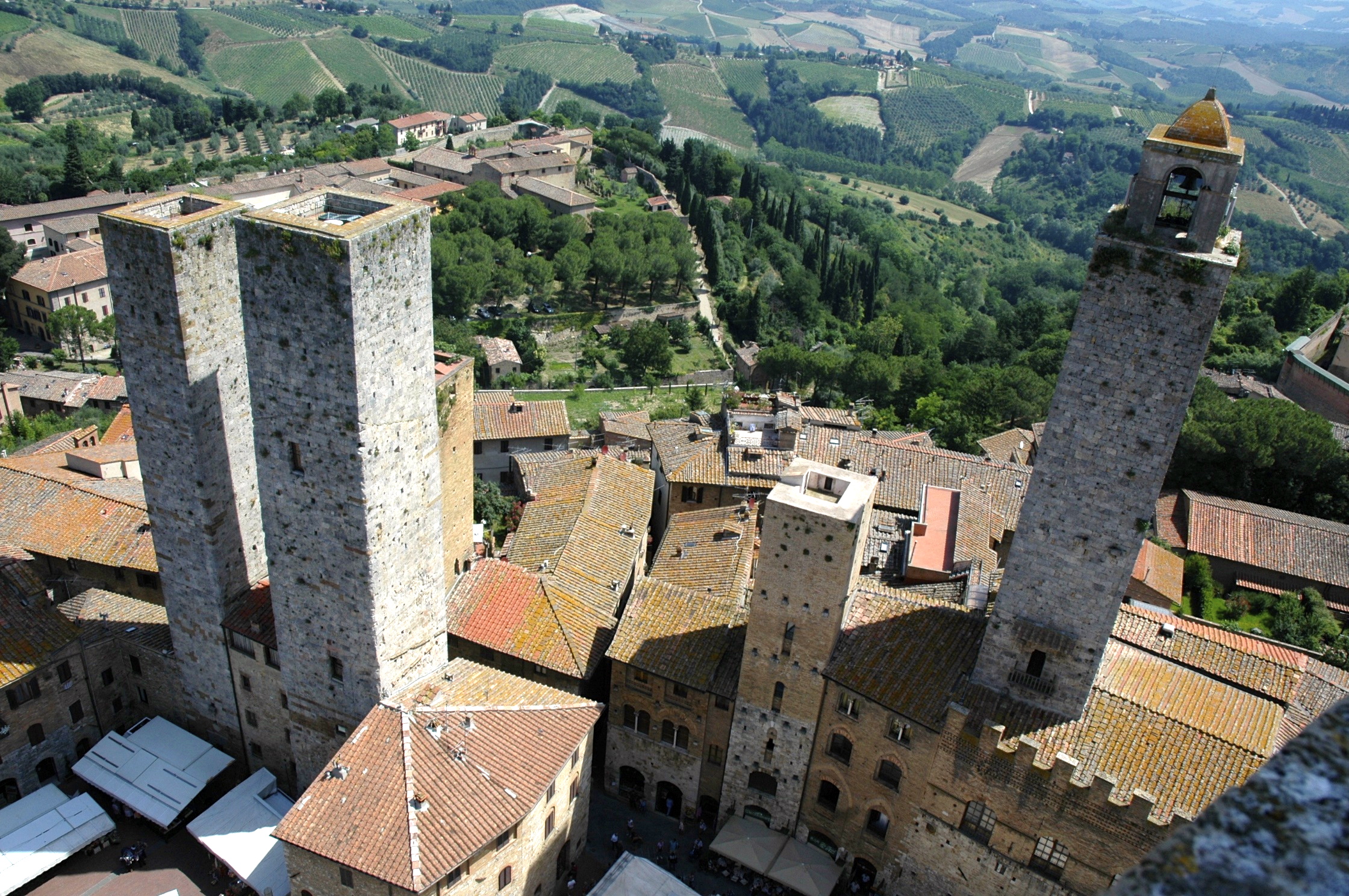 A Torre Grossa, é a mais alta da cidade, com 54 metros e é aberta a visitação e subir as sua escadarias é um programa imperdível, para quem quer ter uma vista magnífica, lá de cima, dos campos da Toscana.