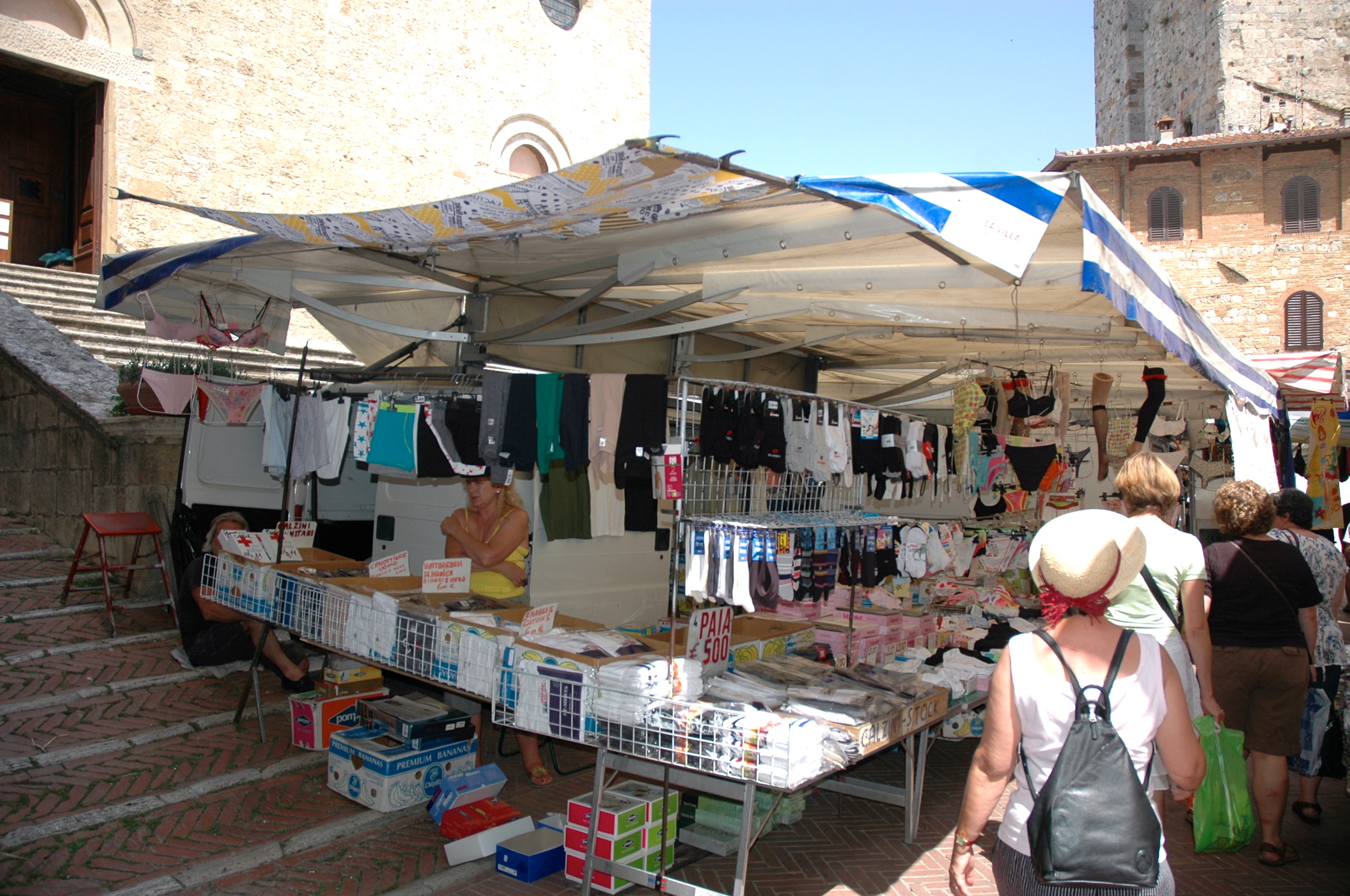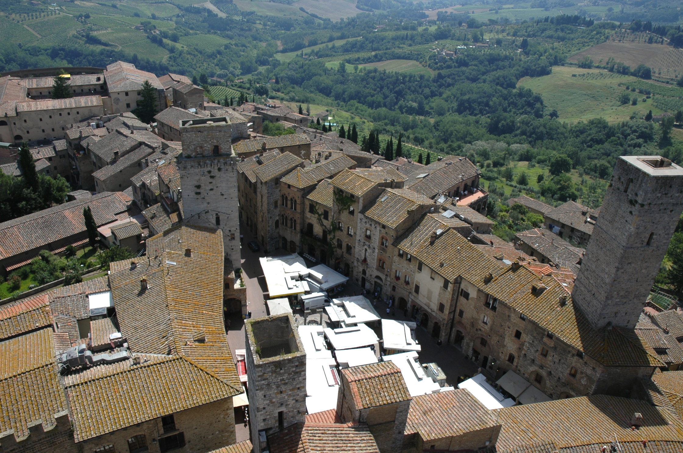 Chegamos a San Gimignano num dia de feira e isso atrapalhou um pouco a visitação da cidade, mas forneceu outra atração que foi, conviver com uma autêntica feira livre italiana. A cidade é rica em obras de arte, lojas, restaurantes e pousadas.