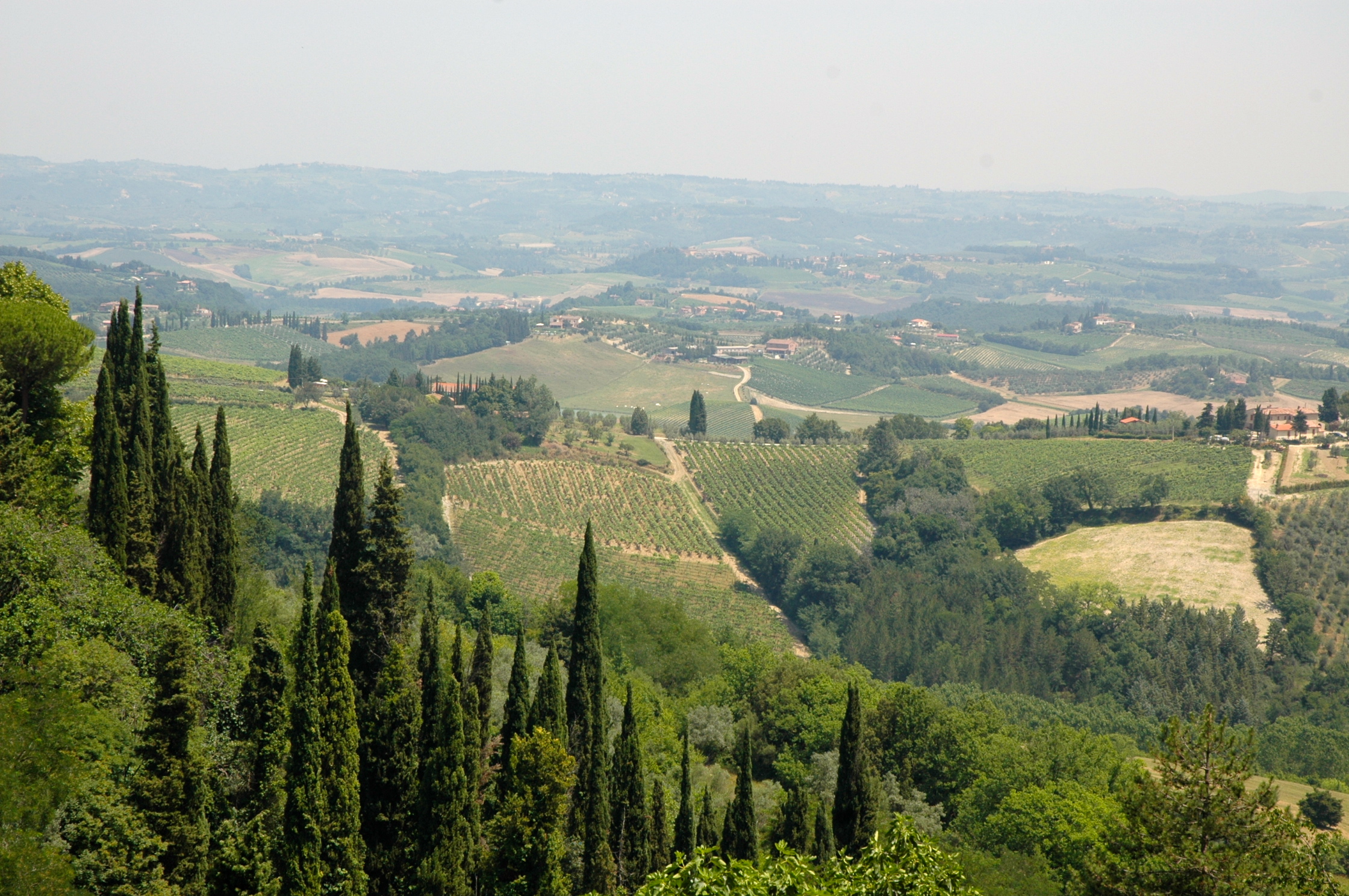 Saímos de Florença e partimos em direção ao litoral. O destino final seria Portofino, próximo a Gênova, na Ligúria. O caminho era através dos campos da Toscana. A paisagem é linda. As colinas seguem em ondulações verdes cobertas por vinhedos e oliveiras que se perdem no horizonte.