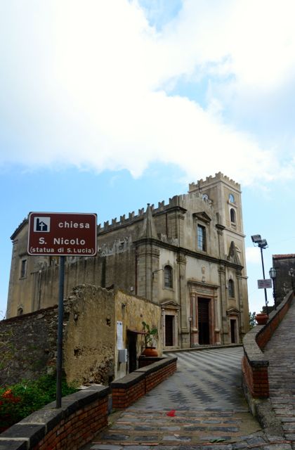 Seguimos caminhando por ruas estreitas e enladeiradas até a Igreja de San Nicolò, uma igrejinha antiga, do século XIII, onde ouve o casamento de Michael e Apolônia. Cada lugar da cidade que serviu de cenário para o filme é identificado com placas descritiva.