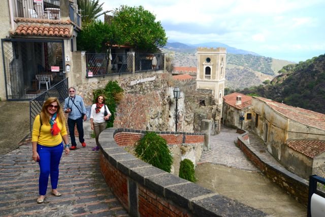 Quando Michael Corleone volta à Sicília no primeiro filme da trilogia, ele segue para Corleone, a cidade do seu pai, Don Vito. Corleone é uma pequena vila perto de Palermo. Essas cenas, porém não foram filmadas em Corleone e sim em Savoca e em Forza D’Agro, nos arredores de Taormina. Colocamos Savoca em nosso roteiro. Quando pegamos os carros em Palermo, há uma semana atrás, encontramos um casal de brasileiros na sede da locadora que nos deu dicas sobre como chegar a Savoca.