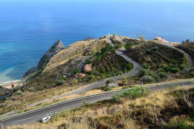 Seguimos às orientações do siciliano e fomos em frente até que o GPS se encontrou mais uma vez. Continuamos em frente obedecendo às ordens do GPS. Alguns quilômetros depois, mais uma barreira, com a mesma informação: “RETORNE, ESTRADA DANIFICADA”. Após uma breve consulta a Dr. Nery, Dra. Marise e Mônica, que estavam nessa aventura de viagem, decidimos não respeitar o aviso da barreira e seguir em frente. O pacto era seguir bem devagar para minimizar riscos. A estrada foi ficando cada vez mais complicada. Trechos desmoronados, trechos em que passávamos apenas por meia pista, o medo foi aumentando, mas 5 quilômetros depois estávamos chegando a Savoca e vimos, do outro lado do vale, que havia uma estrada melhor, aquela que todos os visitantes usavam, menos nós.
