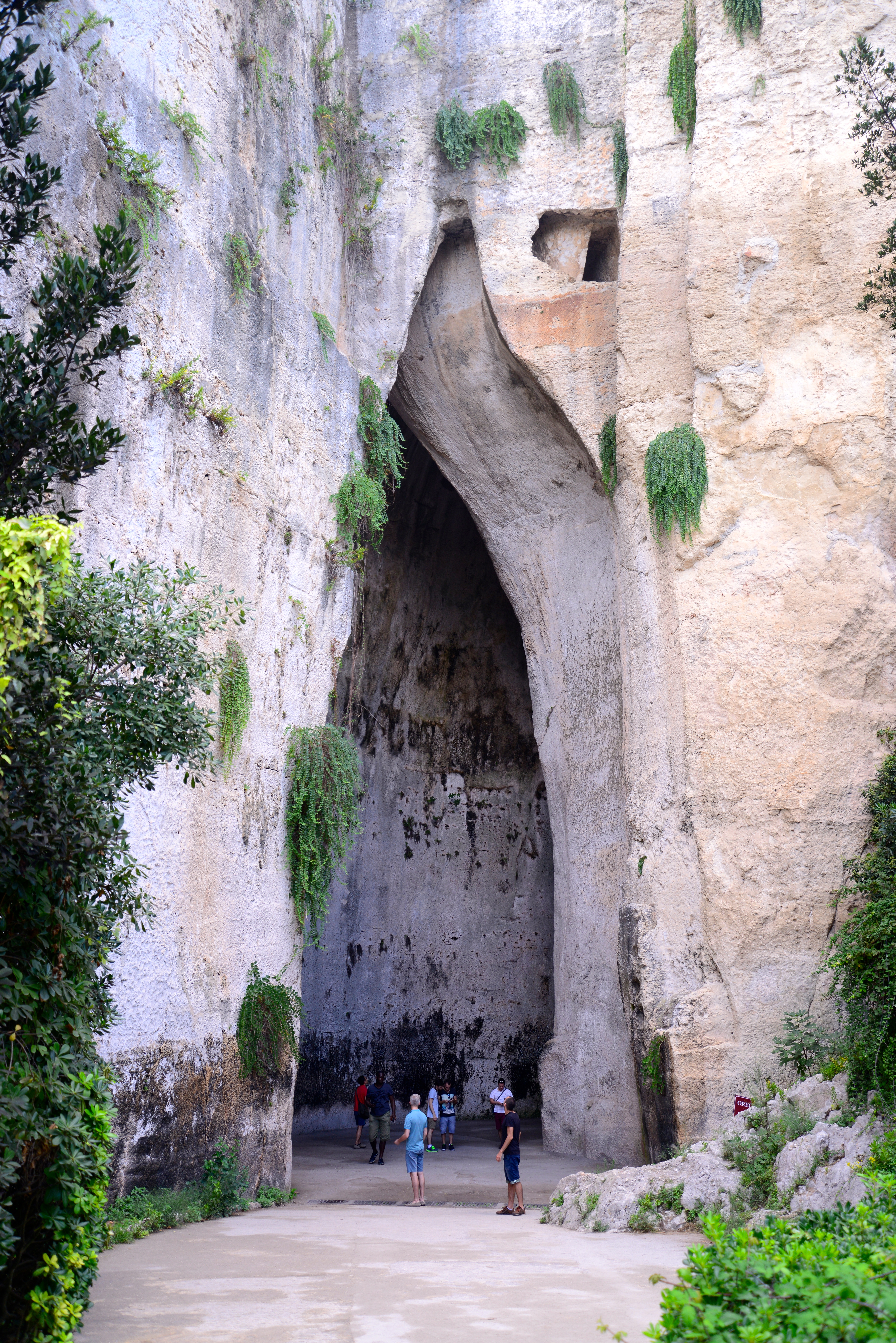Aí perto do Teatro Grego está a Pedreira Latomia del Paradiso, onde fica a enorme gruta denominada Orelha de Dionísio. O eco que sai da gruta permite que, o que se fala lá dentro possa ser ouvido claramente do lado de fora. Daí o nome de Orelha de Dionísio. O tirano prendia aí os seus inimigos e escutava do lado de fora, o que falavam.