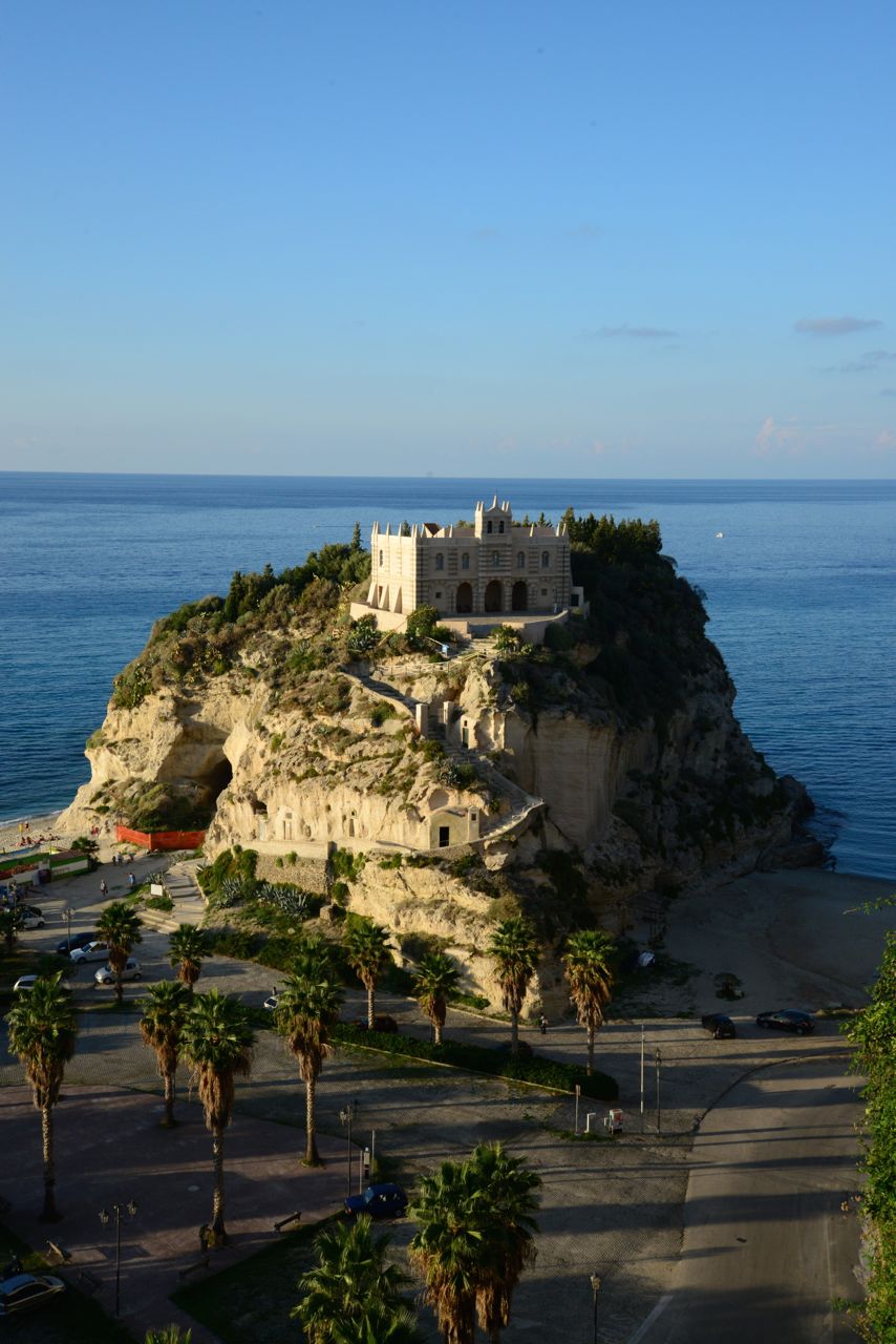 Seguimos direto para Tropea, uma das mais charmosas cidades da costa do Mar Tirreno, na Calábria, localizada numa área conhecida como “Costa dos Deuses”. A cidade tem uma situação geográfica especial, fica no alto de uma colina, com enormes falésias que mergulham na beira da praia, sobre as quais Tropea foi construída.