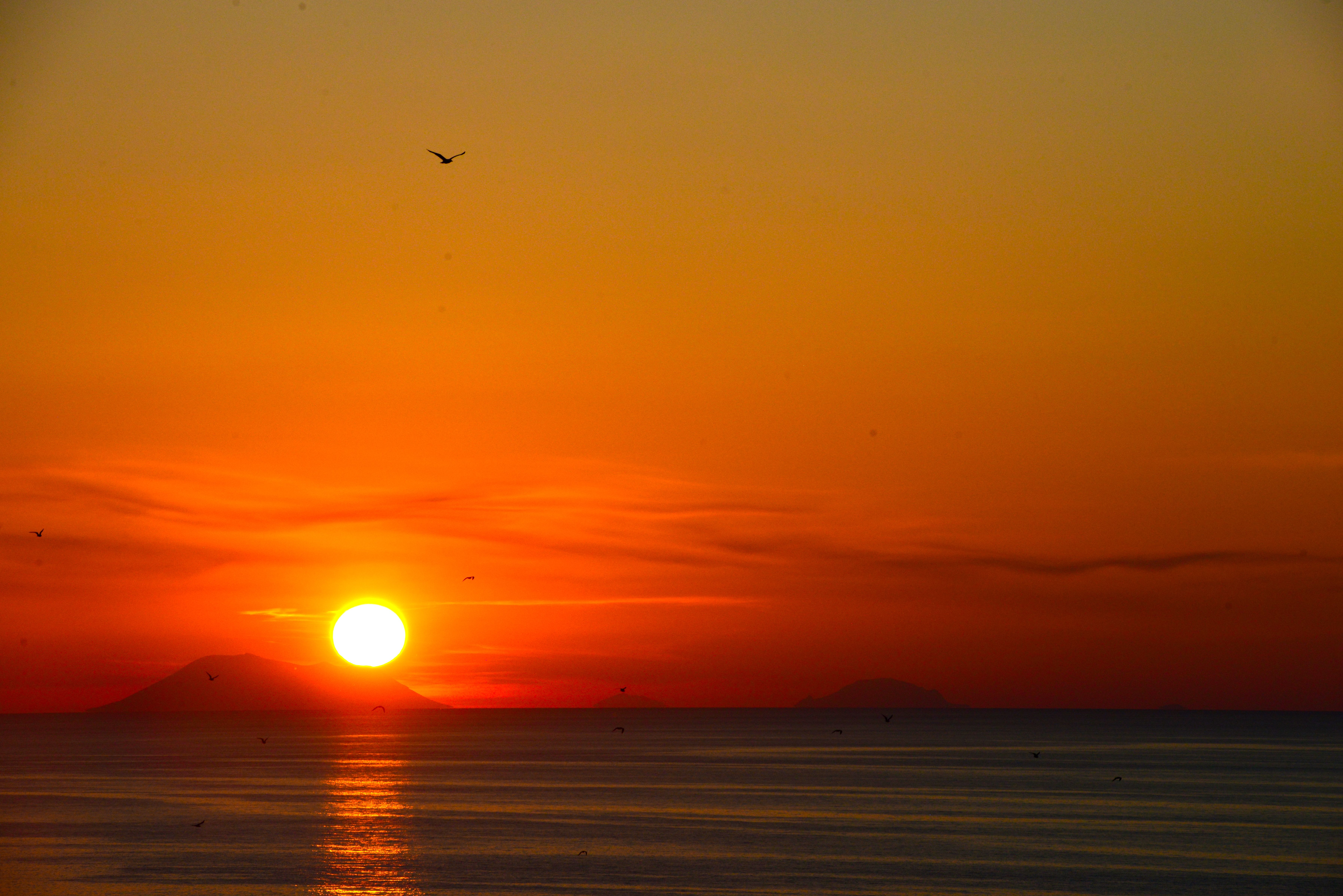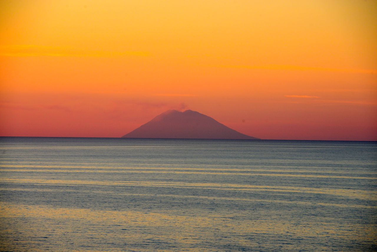 O por-do-sol de Tropea é maravilhoso e o que mais impressionou foi o fato de que apenas com a descida do sol, conseguimos avistar o cone do vulcão Stromboli no horizonte, criando uma moldura para esse momento especial.