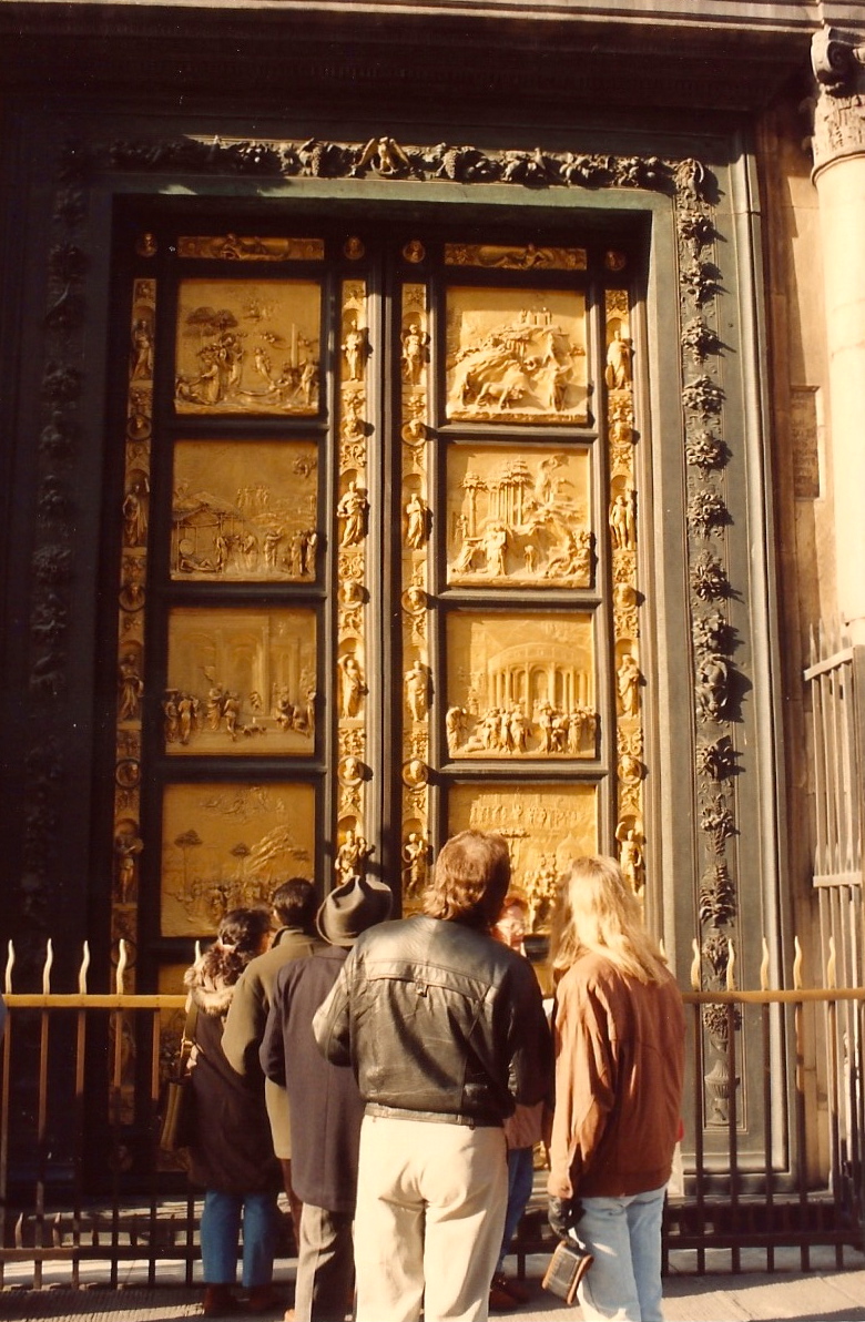 O portão que está hoje no Batistério é uma réplica. O original está exposto no Museu dell’Opera del Duomo. O portão de Ghiberti é esculpido em baixo relevo, com uma grande ilusão de profundidade.