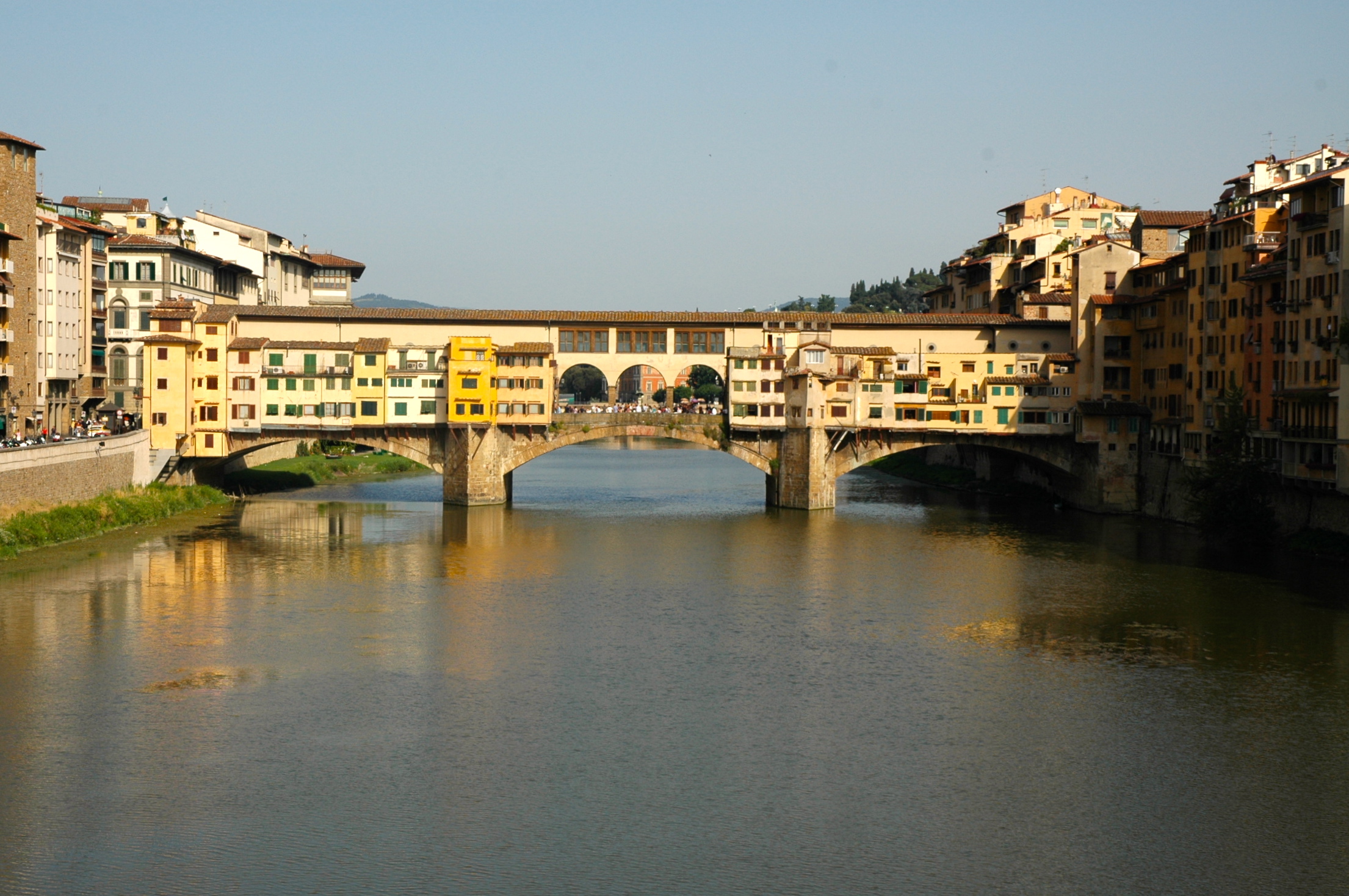 Terminando o tour fomos almoçar e depois passeamos a pé indo até a Ponte Vecchio um dos símbolos de Florença. A ponte sobre o Rio Arno é a mais antiga da cidade, data de 1345. Desde o século XVI, a ponte é ocupada por joalheiros e ourives
