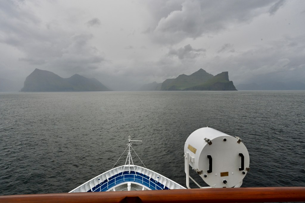 Estávamos num cruzeiro marítimo, no navio de exploração Silver Wind, navegando pelo sudeste da Islândia, em águas do Mar do Norte. Saímos de Djupivogur em direção às Ilhas Faroe, um arquipélago autônomo que pertence ao Reino da Dinamarca. Embora façam parte da Dinamarca, as Ilhas Faroe possuem seu próprio governo e parlamento, desfrutando de um alto grau de autonomia política e cultural. Esta relação única torna o arquipélago um destino fascinante, onde se pode explorar uma cultura distinta em meio a paisagens naturais impressionantes.