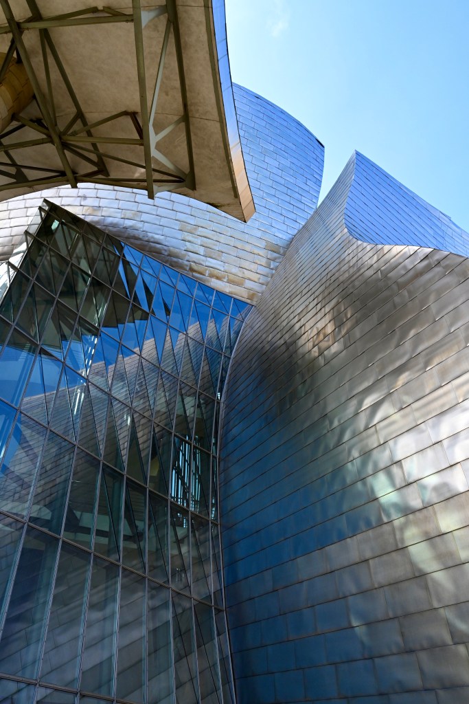Quando nos aproximamos do edifício ele vai ficando cada vez mais enigmático e encantador. Externamente é coberto por gigantescas placas finas de titânio, curvadas e com cores diferentes, lembrando escamas de peixes. Muitos estruturalistas, especialistas, duvidaram da capacidade executiva do Museu, quando o projeto começou a ser divulgado.