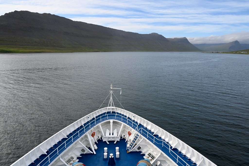 Começamos a viagem passando pelos fiordes ocidentais e do norte do país. Os fiordes foram formados pelo degelo da última era glacial, há cerca de 12 mil anos. À medida que o gelo derretia, o seu peso e o movimento, escavava enormes vales de erosão que eram preenchidos pela água do mar. São geralmente entradas estreitas e bastante profundas e que penetram muito no continente. Todo o litoral da Islândia é formado por grandes, extensos e profundos fiordes. No mar agitado, navegar no interior de um fiorde é um alento, pois as águas são naturalmente mais calmas.