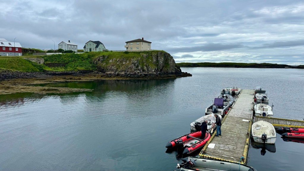 Fizemos uma primeira parada em Stykkishólmur, localizada no oeste da Islândia, no extremo norte da península de Snæfellsnes, nas margens do fiorde Breiðafjörður. É o centro comercial da região. É um dos melhores lugares do país para sentir a verdadeira alma da Islândia. A localização, o porto pitoresco e as casas coloridas encantam aqueles que visitam a Península de Snæfellsnes.