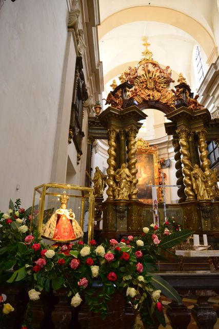 A igreja, de 1613, foi o primeiro edifício barroco de Praga. À direita do altar principal, está o pequeno Menino Jesus, protegido por uma caixa de vidro. Acredita-se que a imagem é responsável por milagres e bênçãos, atraindo fiéis do mundo todo.