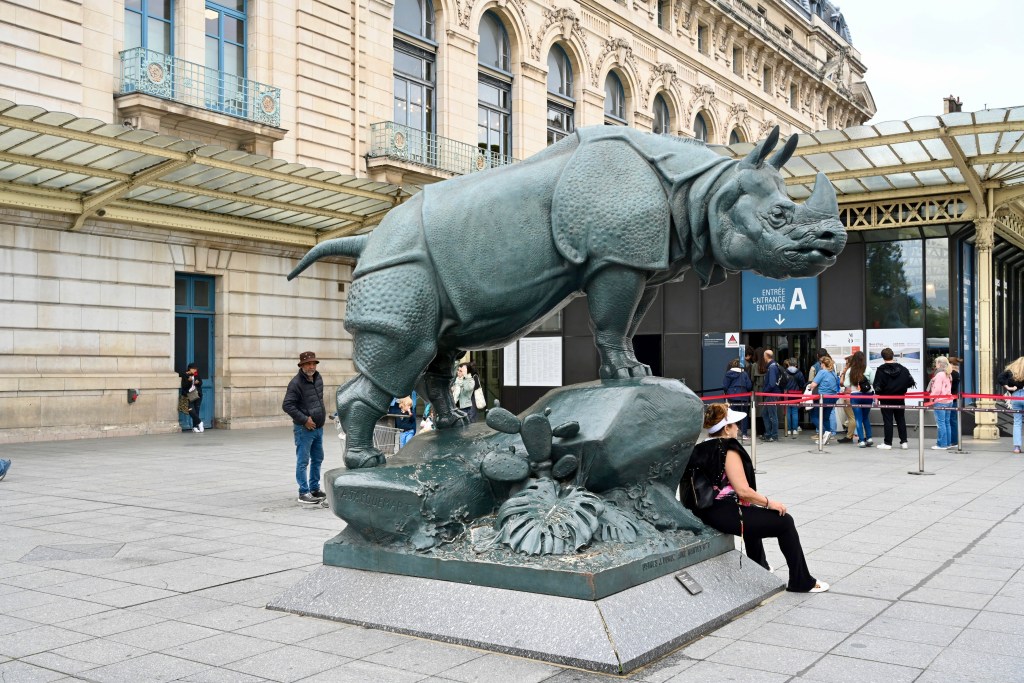 Na área externa do Museu d’Orsay, logo em frente à entrada principal, estão dispostas várias esculturas monumentais que já introduzem o visitante ao universo artístico do museu. Entre as mais marcantes, destacam-se o rinoceronte em bronze e o conjunto de esculturas representando nativos de diferentes continentes, originalmente criadas para a Exposição Universal. Essas obras mostram o olhar europeu sobre o mundo no século XIX e valorizam a fachada neoclássica da antiga estação Gare d’Orsay, marcando o início da visita e ampliando a experiência artística para além dos limites internos do edifício.