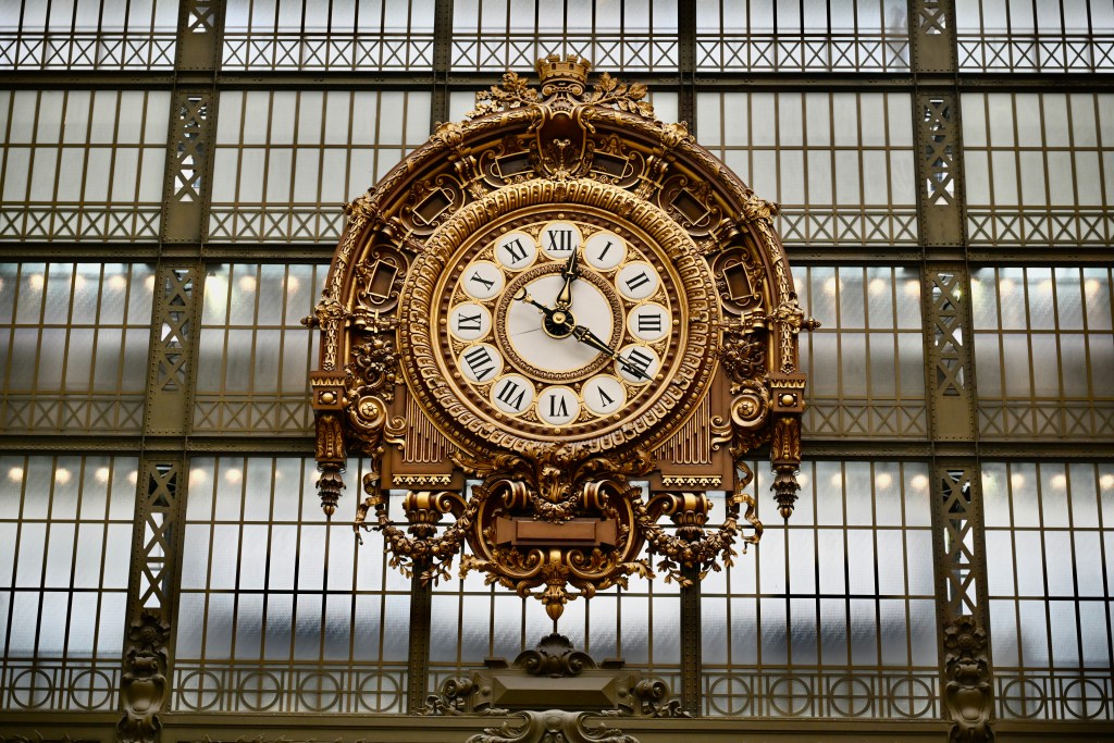 O grande relógio do Museu d’Orsay é um dos elementos mais emblemáticos do edifício, herança direta de sua antiga função como estação ferroviária. Instalado na fachada que dá vista para o rio Sena, ele se destaca tanto pelo tamanho quanto pela beleza do seu mostrador envidraçado, que permite a entrada de luz natural. Hoje, o relógio não só preserva a memória da Gare d’Orsay, mas também serve como um marco visual dentro do museu, conectando o passado ferroviário à atual vocação artística do espaço.