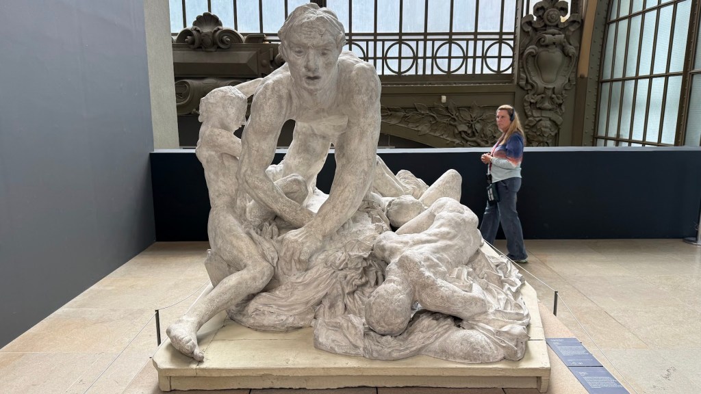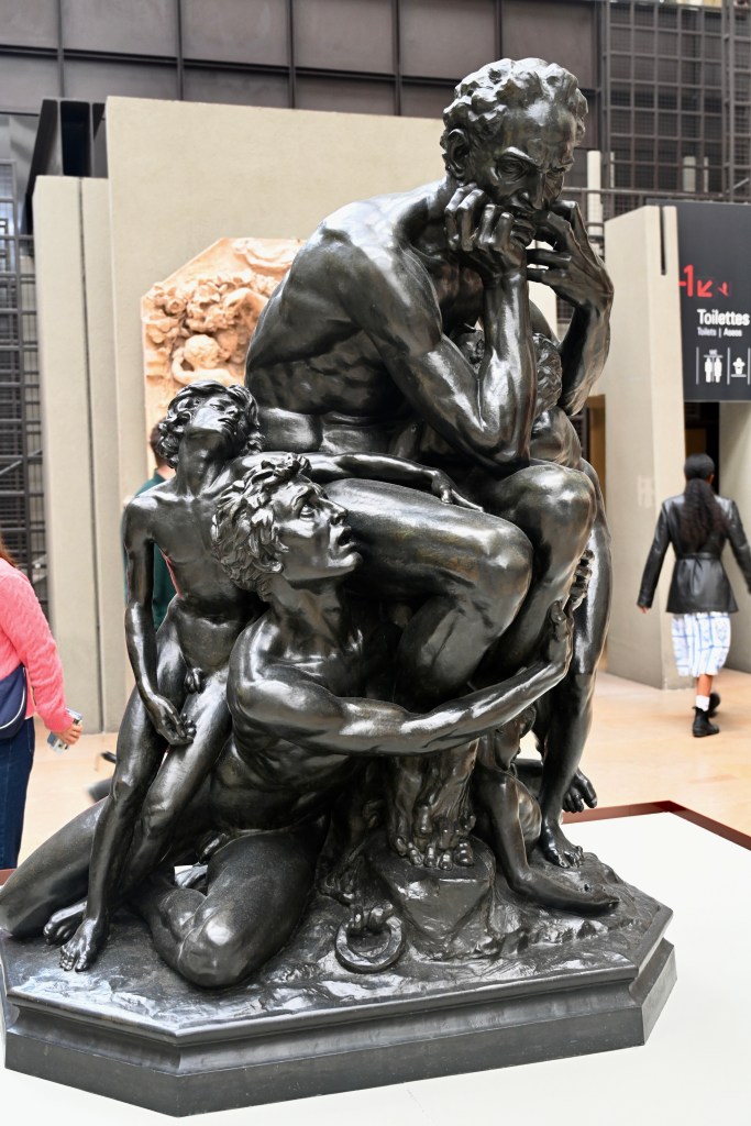 O Museu d’Orsay abriga duas poderosas esculturas da tragédia de Ugolino, narrada por Dante, em A Divina Comédia. O conde é aprisionado com seus filhos e netos numa torre, onde morrem de fome. Em desespero extremo, Ugolino é acusado de ter devorado os próprios filhos antes de morrer. Uma das esculturas de Ugolino do D’Orsay foi realizada por Jean-Baptiste Carpeaux e uma outra por Auguste Rodin. A versão de Carpeaux é impressionante, capturando com intensidade o desespero de Ugolino cercado pelos filhos, com corpos entrelaçados em uma escultura dinâmica e expressiva. A escultura de Rodin adota uma abordagem mais contida, quase introspectiva, com ênfase na tensão muscular e no sofrimento interior do personagem. Rodin, valoriza as formas inacabadas e o drama, mais do que a narrativa explícita. Enquanto Carpeaux emociona pelo movimento e pela dor escancarada.