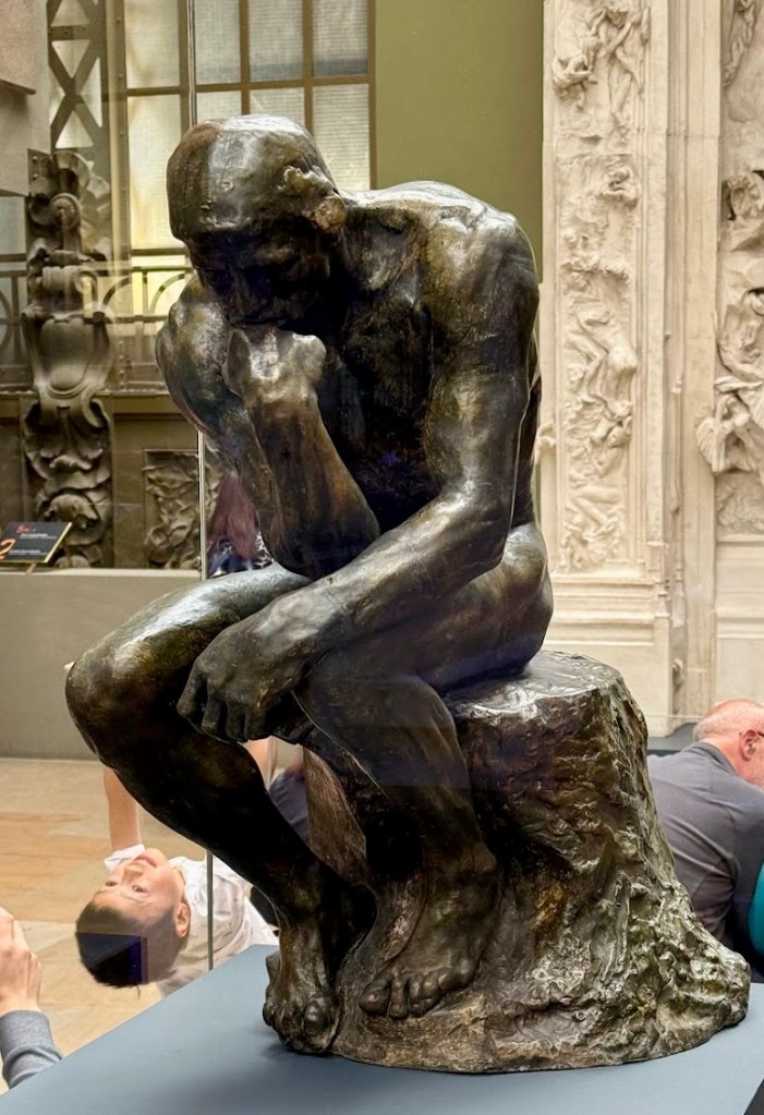 O Pensador, de Auguste Rodin, é uma escultura icônica da arte moderna. Foi concebido como parte do conjunto de A Porta do Inferno, a figura foi pensada para representar Dante, refletindo sobre os destinos das almas condenadas em A Divina Comédia. Com o tempo, porém, O Pensador ganhou uma importância tão grande, que se tornou um símbolo universal da introspecção e da complexidade do espírito humano. A escultura impressiona pela tensão do corpo musculoso curvado sobre si mesmo, em postura concentrada, que expressa força física e profundidade intelectual. Ocupa um lugar de destaque no pátio central do Museu D’Orsay.