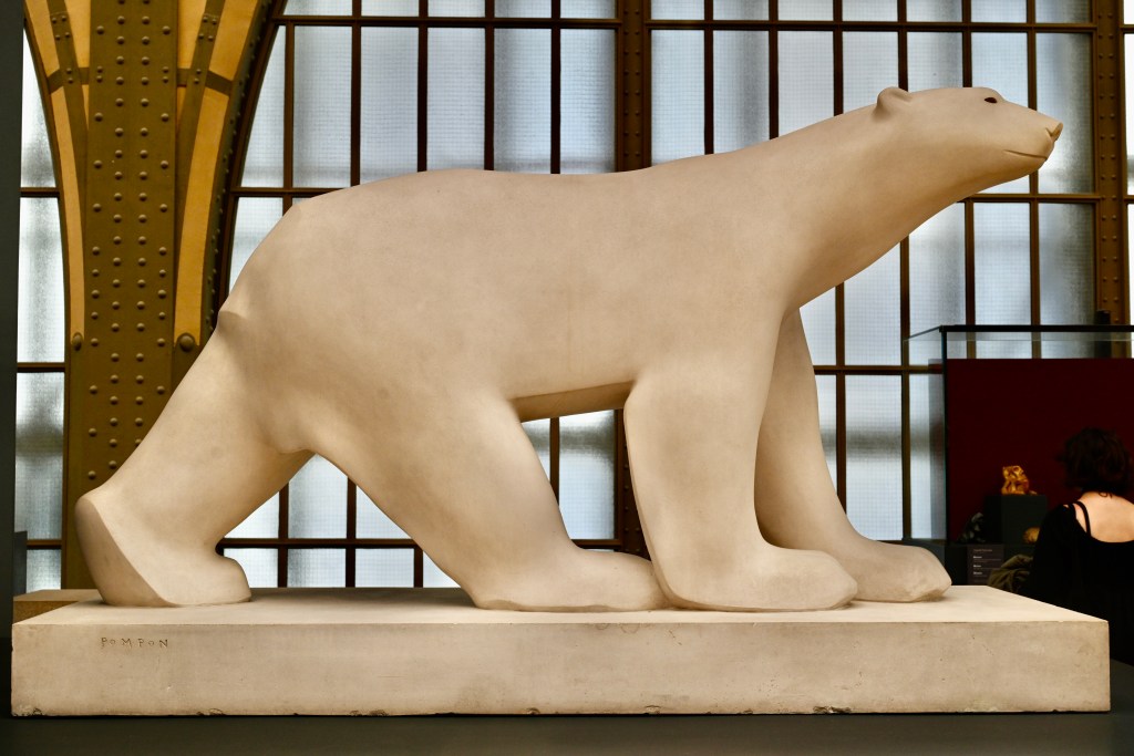 A escultura O Urso, de François Pompon, é uma das obras mais simbólicas do Museu d’Orsay, destacando-se por sua forma simples e elegante. Criada no início do século XX, representa um urso polar em marcha, com linhas suaves e volumes definidos, que revelam a busca de Pompon por uma escultura sem ornamentos. Uma abordagem moderna, que antecipou tendências do design e da escultura minimalista, contrastando com a dramaticidade das obras do século XIX, criando um ponto de transição dentro do acervo do museu.