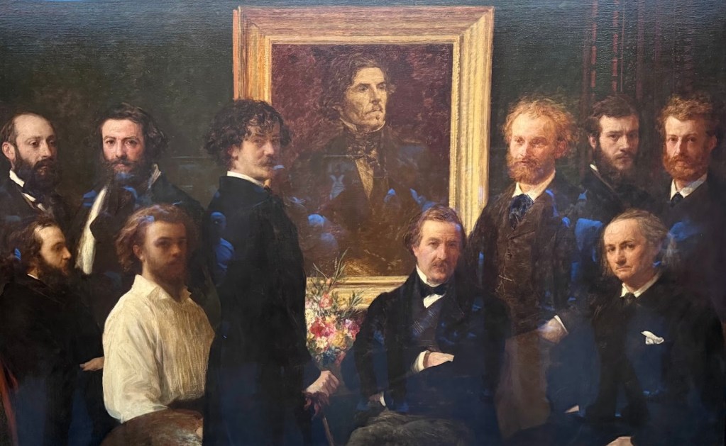 Outra pintura especial do Museu d’Orsay é a “Homenagem a Delacroix”, realizada por Henri Fantin-Latour em 1864. Uma obra simbólica que presta tributo ao pintor Eugène Delacroix, um dos grandes mestres do romantismo francês, falecido no ano anterior. Fantin-Latour, decepcionado com a pouca presença de público no cortejo fúnebre de Delacroix, de quem era admirador, decidiu realizar uma homenagem pública através de uma pintura representando um conjunto de dez personalidades das artes e das letras, expressando a sua admiração por Delacroix. No centro da composição está o retrato póstumo de Delacroix, cercado por um grupo de artistas e intelectuais contemporâneos. Entre as figuras presentes estão grandes nomes da época como Édouard Manet, Charles Baudelaire, Henri Fantin-Latour (o próprio autor, de camisa branca), James Whistler e Albert de Balleroy. A obra é também um manifesto sobre a união entre pintura, literatura e pensamento crítico.