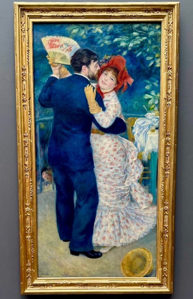 O Baile do Moinho de la Galette, “Le Bal du Moulin de la Galette” é uma das obras-primas de Renoir, datada de 1876. Uma das pinturas mais admiradas e fotografadas pelos visitantes do Museu. Retrata um domingo à tarde no Moinho de la Galette, um salão de festas ao ar livre no bairro de Montmartre, em Paris, frequentado por trabalhadores, artistas e jovens parisiense. Com pinceladas soltas, luz vibrante filtrada pelas árvores e uma atmosfera de leveza, Renoir capta o espírito festivo e despreocupado da vida moderna em Paris. A cena está cheia de personagens em movimento. Dançando, conversando, sorrindo, em uma celebração festiva. A técnica impressionista está presente na maneira como a luz e a cor são tratadas com espontaneidade, sem contornos definidos, criando uma cena envolvente. Essa obra é considerada um ícone do impressionismo.