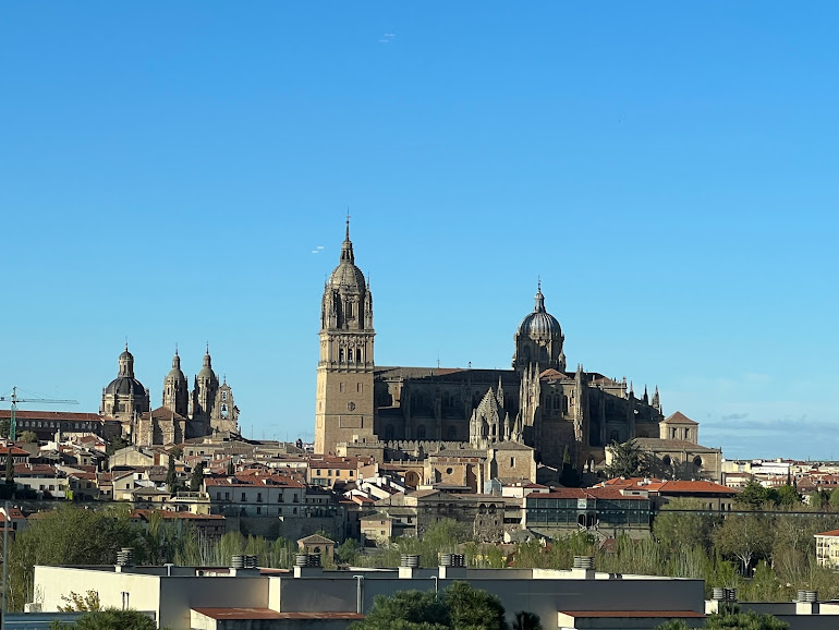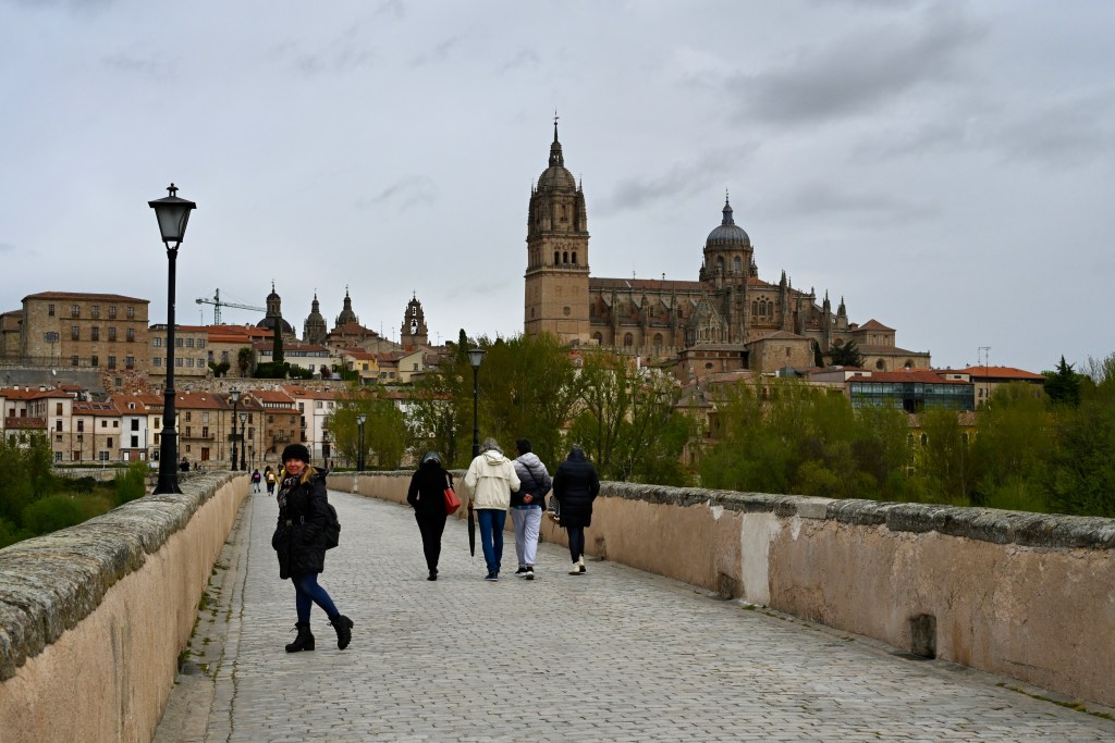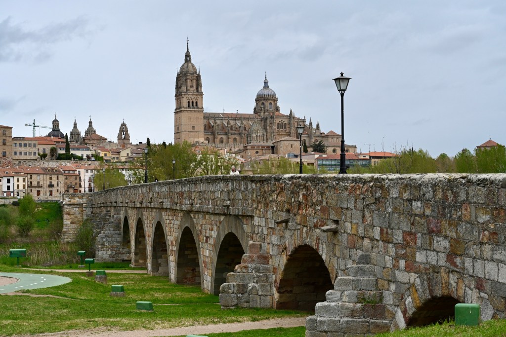 Estávamos hospedados no Hotel Parador de Salamanca e seguimos andando para o centro histórico da cidade. No caminho, passamos pela maravilhosa Ponte Romana sobre o Rio Tormes, construída no século 1º d.C., quando a região fazia parte do Império Romano. Até hoje consegue manter intactos, 15, dos seus 26 arcos originais. É um dos marcos mais antigos da cidade de Salamanca.