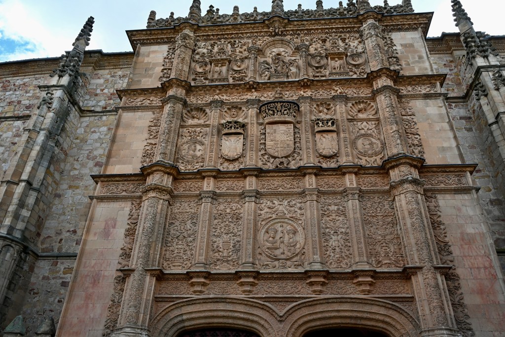 Um dos destaques do edifício fica para a sua fachada frontal, do século XVI, com uma arquitetura medieval e esculturas talhadas em pedra. Esse foi o período de maior vibração da cidade, que chegou a ter 24 mil habitantes, sendo uma das maiores cidades da Europa naqueles tempos. No final do século XVI, 6.500 alunos se matriculavam na Universidade de Salamanca, todos os anos.