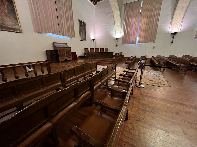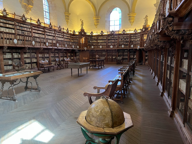 Na visita ao prédio da Universidade de Salamanca, podemos ver a grande biblioteca e algumas salas de aula que foram mantidas no formato original. O pátio central e as escadarias são destaques da arquitetura do edifício.