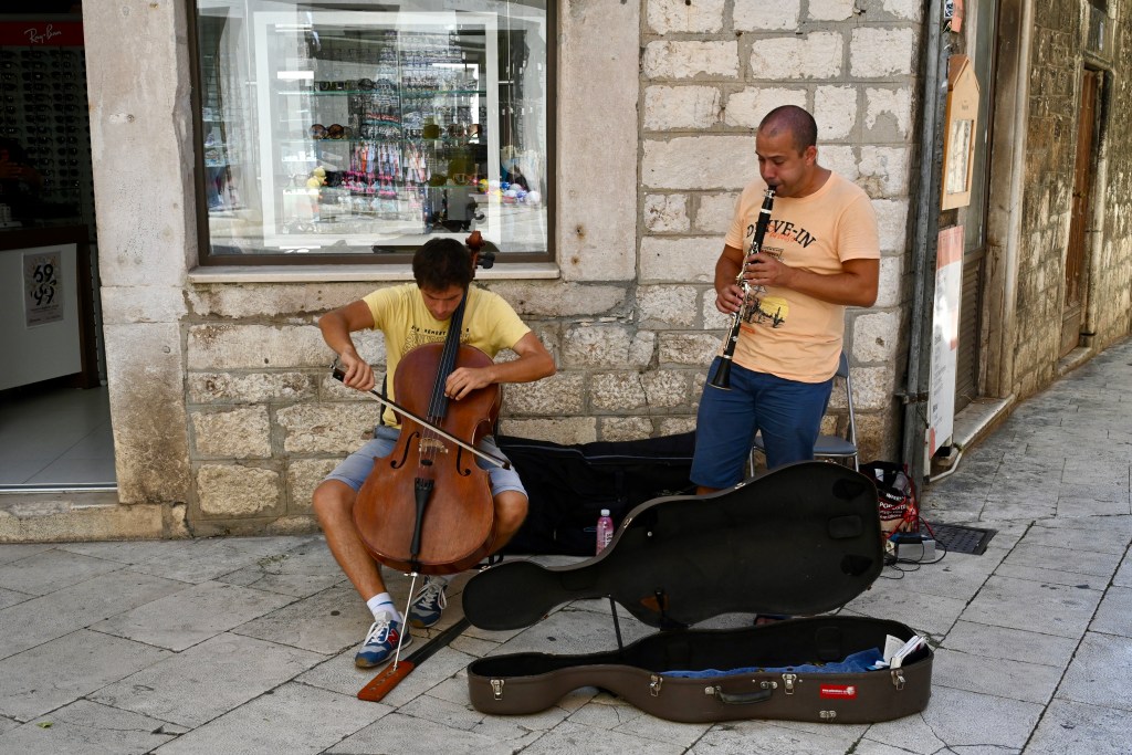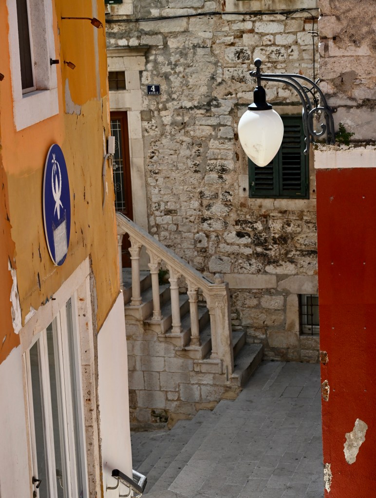 Saímos da Catedral e entramos nas ruelas estreitas do Centro Histórico de Sibenik, A visita foi curta e improvisada, mas valeu muito a pena. O Centro Histórico é um charme, com ruas estreitas, ladeiras e casarões medievais muito bem preservados. Estava muito quente e os sorvetes ajudavam a conviver com a temperatura.