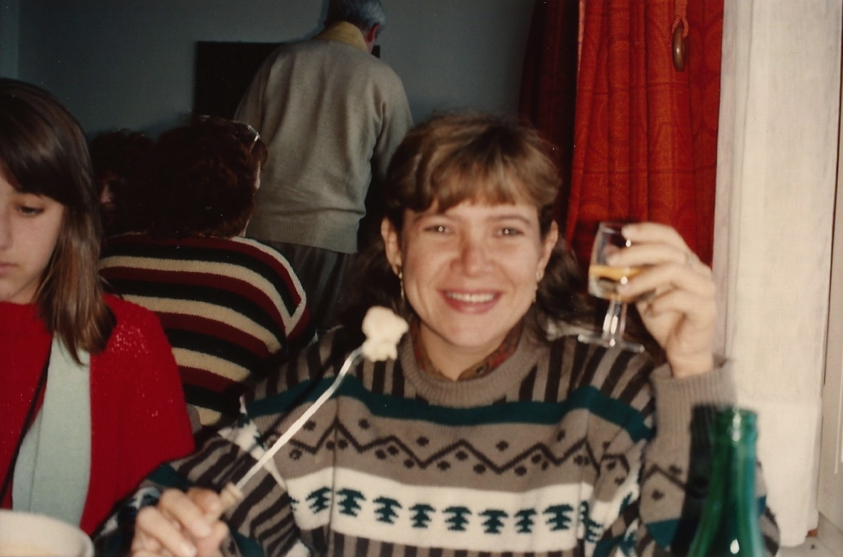 Almoçamos com todo o grupo num restaurante no pico da montanha. O cardápio era bem suíço: vinho, fondue de queijo, salsichas com batatas e torta de pêssego. Depois do almoço fomos brincar na neve e tirar fotos da paisagem encantadora.