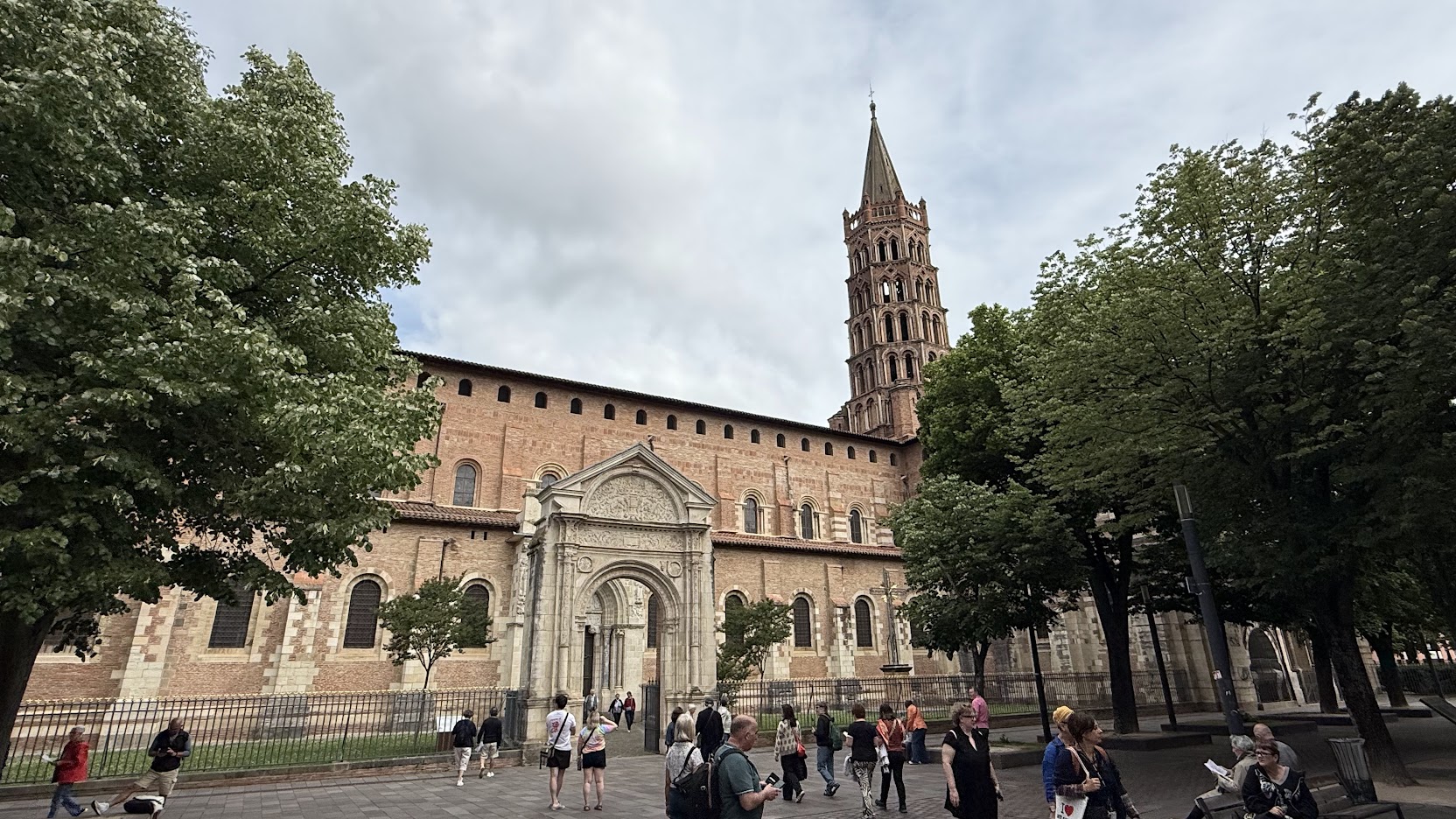 Continuamos andando até a Basílica de Saint-Sernin (São Saturnino). Um centro de peregrinação em Toulouse. É uma das maiores igrejas românicas preservadas da Europa e um dos marcos mais impressionantes da cidade. Construída entre os séculos XI e XIII sobre o túmulo de São Saturnino (Saint Sernin), primeiro bispo e mártir de Toulouse, a basílica é um importante ponto de peregrinação no Caminho de Santiago. Com sua torre octogonal de cinco andares, fachada em tijolos rosados e um interior majestoso com arcos em pedra e capitéis esculpidos. Saint-Sernin impressiona pela grandiosidade e serenidade.