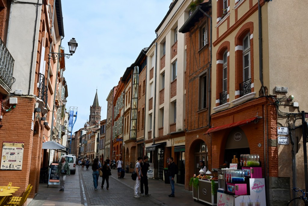 Continuamos andando pelo centro histórico, pela Rue Du Taur uma das mais emblemáticas e históricas da cidade rosa. Ligando a Praça do Capitólio à imponente Basílica de Saint-Sernin, essa via estreita e charmosa guarda em suas fachadas de tijolos rosados a essência da arquitetura medieval da cidade. O nome “Taur” vem da palavra latina para touro, em referência à lenda de Saint Saturnin (ou Saint Sernin), que teria sido martirizado ao ser arrastado por um touro exatamente nesse trajeto. Ao caminhar por ela, o visitante encontra lojas tradicionais, cafés convidativos, livrarias, galerias de arte e uma atmosfera vibrante e autêntica, que mistura história e vida contemporânea.