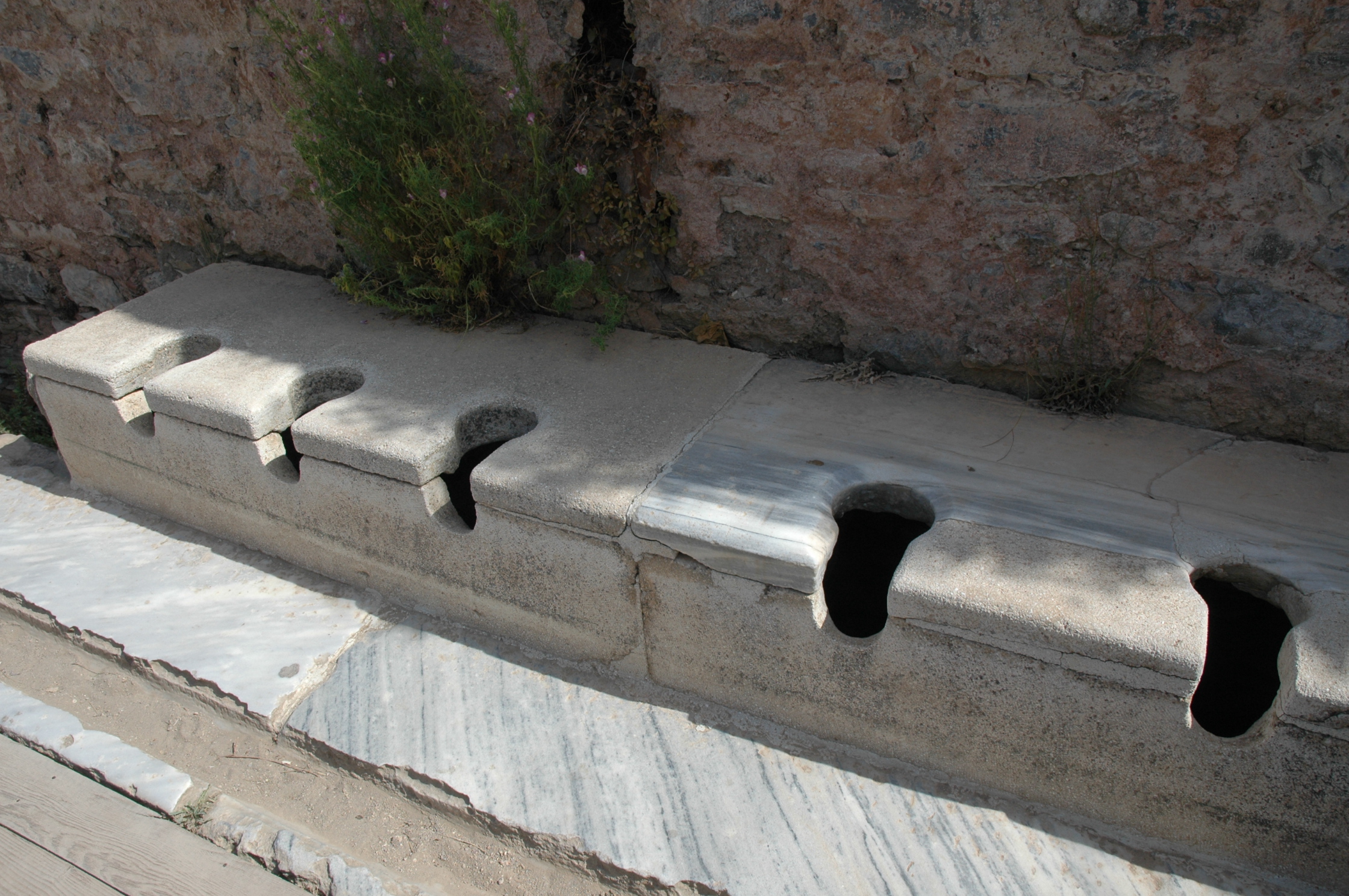 Existem ruínas de locais para banhos, com a preservação das instalações sanitárias, inclusive as latrinas coletivas, que são uma curiosidade que os turistas adoram.