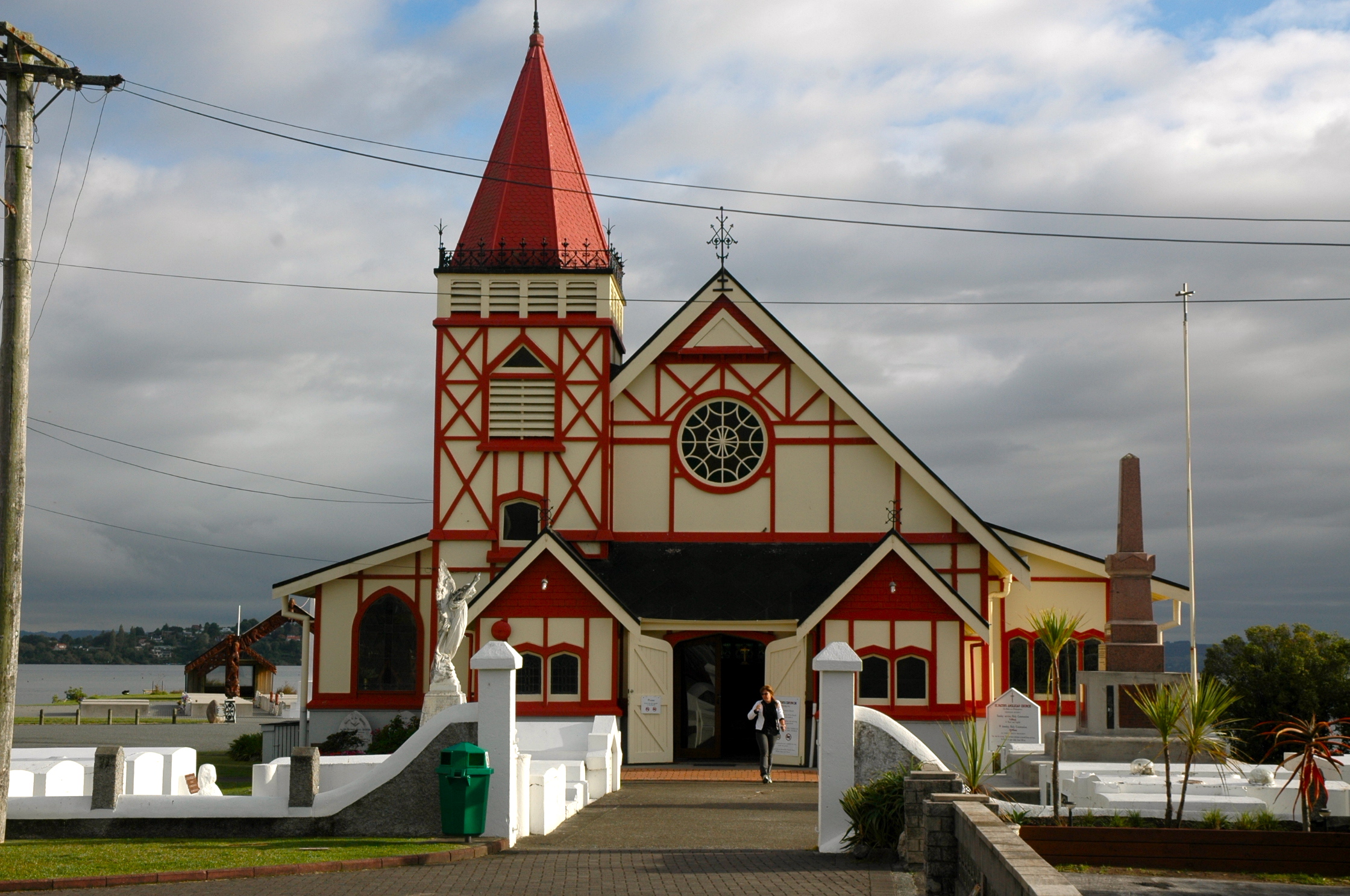 Em frente à casa de culto Tamatekapua aparece a Igreja anglicana St. Faith’s, construída no início do século XX, em estilo Tudor, marcou a convivência cultural entre os maoris e os europeus na região de Rotorua. O cristo da igreja está vestido com o manto maori (korowai).