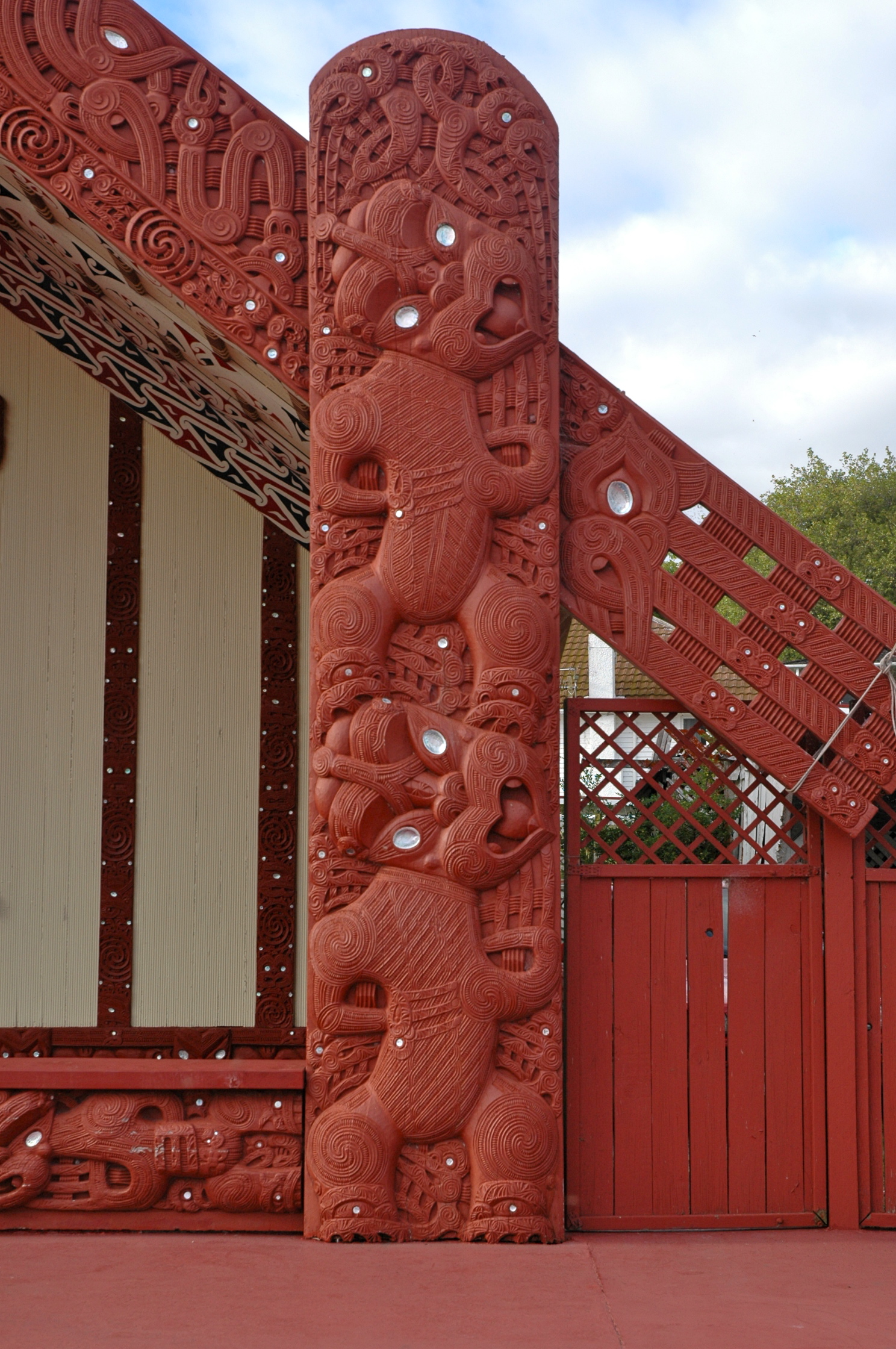 Na base do pilar central da casa Tamatekapua aparece a figura mitológica de Ngatoroirangi, o navegador da canoa maori, que segundo a lenda levou a atividade termal para a região.