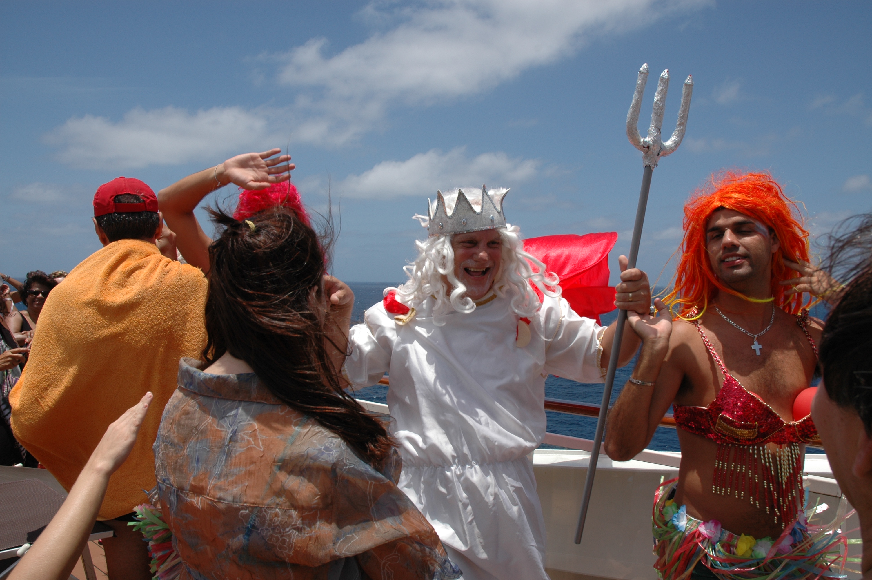 Quando passamos pela Linha do Equador, o navio organizou uma grande festa no deck das piscinas: A Festa de Netuno é um momento de grande descontração, em que boa parte dos passageiros a bordo participam, jogando farinha de trigo e outras lambuzeiras, uns nos outros e tudo termina numa grande festa.